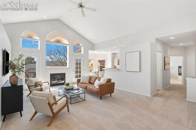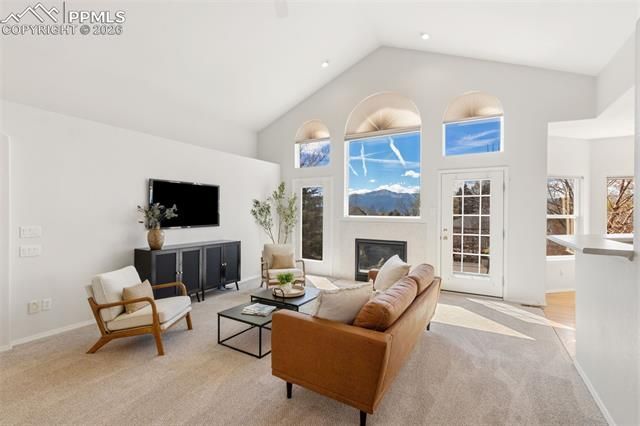 Don’t miss this beautifully updated WALK-OUT rancher offering over 4,200 square feet, 5 bedrooms, 4 bathrooms, an office or formal dining room, and an oversized 3-car garage, with stunning Pikes Peak VIEWS from the home, located in the highly desirable Dakota Ridge neighborhood with a swimming pool, pickleball and tennis courts, a park, and year-round events. The striking exterior showcases low-maintenance STUCCO with a new color coating (2026), complemented by a class 4 NEW ROOF, gutters, and downspouts (2026), along with a newer composite DECK (2025). Inside, soaring vaulted ceilings and abundant natural light enhance the spacious living room, anchored by a cozy fireplace and a dramatic wall of windows framing breathtaking Pikes Peak views, with direct access to the deck—perfect for relaxing or entertaining. The main level includes three bedrooms plus an office or formal dining room, an inviting eat-in kitchen with solid wood floors and a pantry, and a private primary suite featuring incredible views, a five-piece bath with its own fireplace, and a large walk-in closet. The walk-out basement offers a generous recreation room with a fireplace and wet bar, two additional bedrooms, a full bath, and a large storage room, making it ideal for guests or multi-generational living. Brand-new carpet throughout the home (2026) and furnace and central A/C (installed 2022), add comfort and convenience. Conveniently located near D-11 schools, parks, dining, the Powers Corridor, and military bases, this home offers an exceptional combination of views, space, upgrades, and lifestyle—move-in ready!